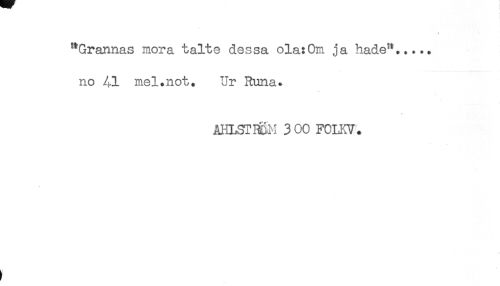 //// "Grannas mora talte dessa ola:Om ja hade"..... //// no Al mel.not. Ur Runa. //// AHLSTmM 3 00 FCIKV. //// ) ////