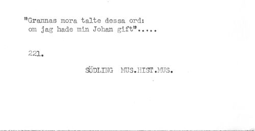 //// "Grannas mor a talte dessa ord: //// om jag hade min Johan gift"..... //// 221. //// SODLING HUS. HIST .MUS. ////