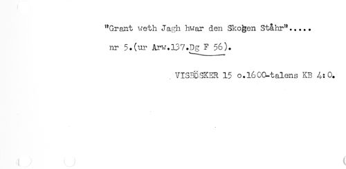 //// "Grant weth Jagh hwar den Skojgen Stå hr'*..... //// nr 5.(ur Arw.137.Dg F 56). //// VISmSKER 15 o.l600-talens KB 4:0. ////