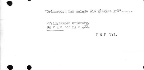 //// "Grinneborg han salaåe sin gångare grå"...... //// 27tld.Kämpen Grimborg. //// Dg F 184 och Dg F A22. //// F S F V:l. ////