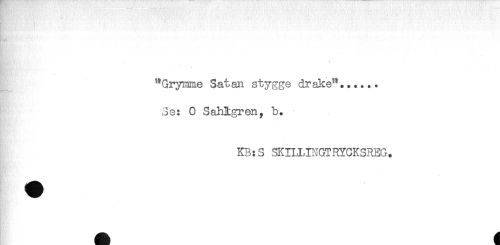 //// \ //// . //// "Grymme Satan stygge drake'*...... //// 3e: O SaMtgren, b. //// - //// KB: 3 SKILUNGTRYCKSREG. ////