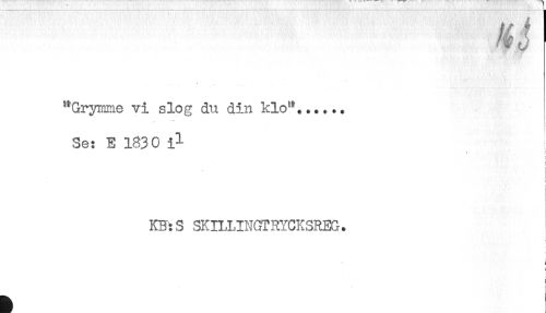 //// "Grynnne vi slog du d3.n klo^,..... //// Se: E 1830 i^ //// < //// < //// KHiS SKILLINGTRYCKSREG. //// i //// ! //// ^ r ////