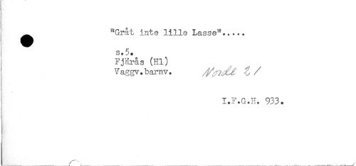 //// ^ "Gråt inte lille Lasse"..... //// s. 5. //// Fjärås (Hl) //// Vaggv.barnv. //// /I.F.G.H. 933. ////