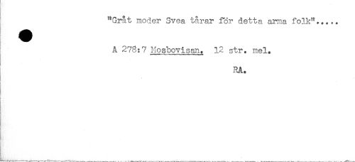 //// "Gråt moder Svea tårar för detta arma folk"..... //// A 278:7 Mosbovisan, 12 str. mel. //// RA. //// i //// ! ////