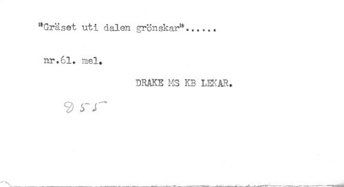 //// "Gräset uti dalen grönskar"...... //// nr.61. mel. //// DRAKE MS KB LEKAR. //// _ ____^__^_____ ////