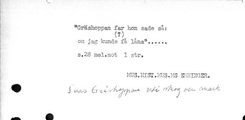 //// "Gräshoppan far hon sade så: //// om jag kunde få låna"...... //// s.28 mel.not 1 str. //// ms.HIST.MUS.MS STINGER. ////