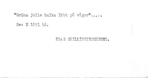 //// "Gröna julle halka lätt på vågor"..... //// Se: E 1851 b3. //// KB: S SKILUHGTRYCKSREG. //// * ////