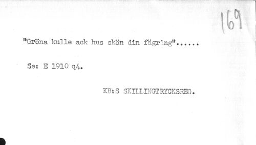 //// "Gröna kulle ack hus skön din fägring"...... //// i //// Se: E 1910 q4. //// KR:S SKILLINGT RYCKSREG. ////