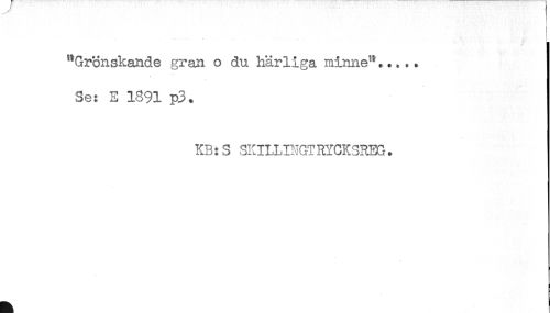 //// "Grönskande gran o du härliga minne"..... //// Se: E 1891 p3. //// KB: S SKILUNGT RYCKSREG. ////