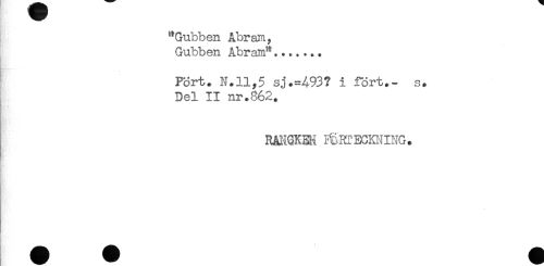 //// "Gubben Åbram, //// Gubben Abram"....... //// Port. N.11,5 sj.=A93? i fort.- s. //// Del II nr.862. //// R&N.QKBM F^RfECKNING. ////