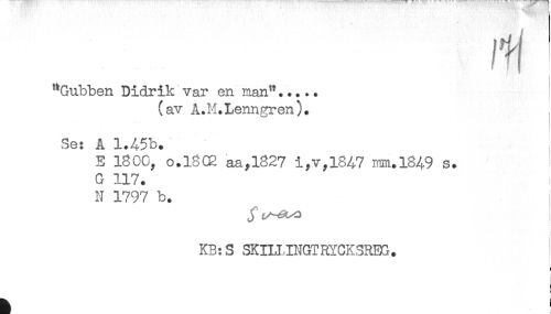 //// i //// ) //// "Gubben Didrik var en man"..... //// (av A.H.Lenngren). //// Se: A 1.45b. //// E I800y 0.18C2 aayl827 iyVylS47 mm.1849 s. //// G 117. //// N 1797 b. //// KB:S 3KILIINGTRYCK3REG. ////