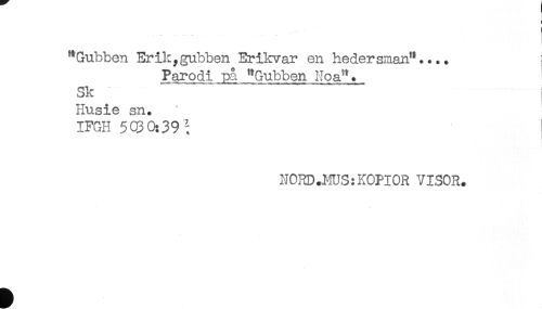 //// ) //// "Gubben Erik,gubben Erikvar en hedersman".... j //// Parodi joå "Gubben No a". //// Sk //// Husie sn. //// IFGH 5030:39 ; //// NORD.MUS:KOPIOR VISOR. ////