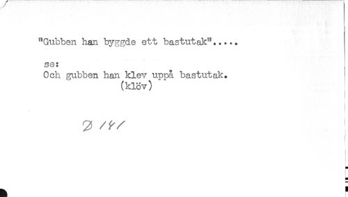 //// "Gubben han byggde ett bastutak"..... //// se: //// Och gubben han klev uppå bastutak* //// (klöv) : //// < //// - //// < //// L //// t //// * //// L ////
