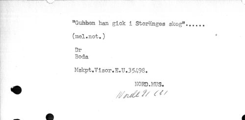 //// - //// "Gubben han gick i Storänges skog"...... //// (mel.not.) //// Dr //// Boda //// . //// Mskpt.Visor.E.U.35A98. //// NORD.HUS. //// ** //// /. ////