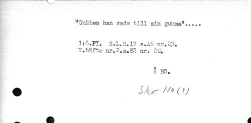 //// "Gubben han sade till sin gunma*..... //// 1:6.PY. S.L.S.17 s.A6 nr.23. //// N.häfte nr.2.s^82 nr. 20. //// Å BO. ////