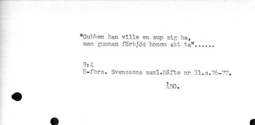 //// } * t ^ //// "Gubben han ville en sup sig ha, //// men gumman förbjöd honom att ta"...... //// 9:4 //// H-fors. Svenssons saml.häfte nr 31.s.76-77. //// ÅBO. ////