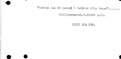 //// "Gubben han är gammal å behöver vila benen"....... //// Bröllopsmarsch.1.Blixt s.22. //// BLIXT SVA KOP. //// t ////