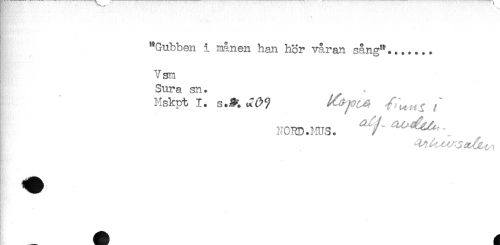 //// "Gubben i månen han hör våran sång"....... //// 7 sm //// Sura sn. * //// Mskpt 1. s.^ //// /! NORD.MUS. ^ ^^^ ////