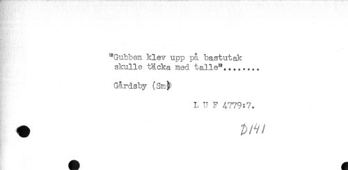 //// "Gubben klev upp på bastutak //// skulle täcka med t alle"... //// Gårdsby (Sm^ //// L U F 4779:7. ////