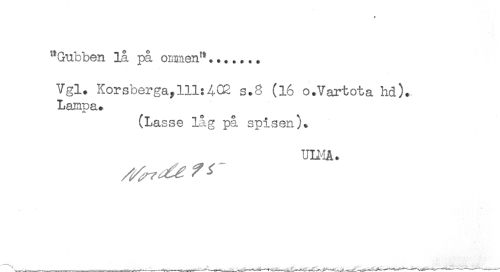//// "Gubben lå på ommen"....... //// Vgl. Korsbergaylll:4C2 s.8 (16 o.Vartota hd). //// Lampa. //// (Lasse låg på spisen). //// UINA* ////