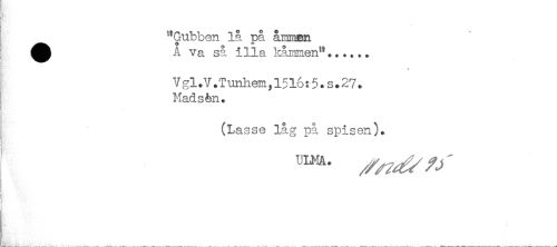 //// "Gubben lå på ånrnmn //// ^^ A va så illa kåirnen"...... //// * //// V gl. V. T unhem, 1516:5. s. 27. //// Madsån. //// (Lasse låg på spisen). //// t //// < //// i ////