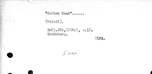 //// "Gubben Noak"...... //// (Melodi). //// Smål.Jät,2306:l, s.13. //// Strömberg. //// ULMA. //// . //// * ////