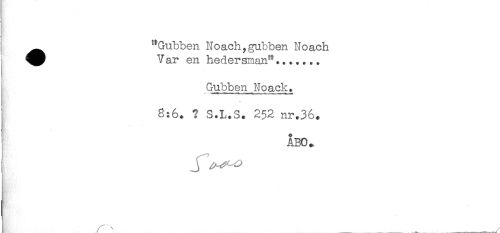 //// "Gubben Noach,gubben Noach //// Var en hedersman"....... //// Gubben Noack. //// 8:6. ? S.L.S. 252 nr.36. //// ÅBO.. ////