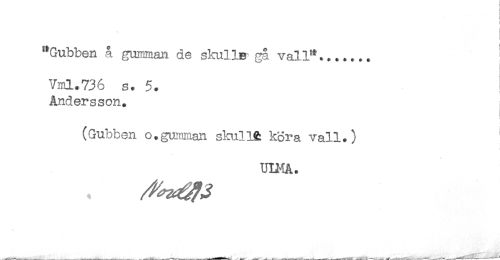 //// i //// t //// "Gubben å gumman de skulle-gå vall"....... ! //// Vml.736 s. 5. //// Andersson. //// ! //// (Gubben o.gumman skull& köra vall.) //// UIMA. ////