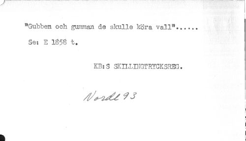 //// "Gubben och gumman de skulle köra vall"...... //// Se: E 1858 t. //// KB:S SKn,LINGTRYCKSREG. //// ? //// t //// ) //// i //// < ////
