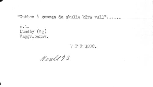 //// ! //// * //// "Gubben å gumman de skulle kora vall"...... //// < //// s.l. //// Lundby (Vg) //// Vaggv.barnv. //// V F F 1838. ////
