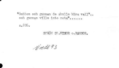 //// "Gubben och gumman de skulle köra vall"., //// och gumman ville inte mota"....... //// s.206. //// sr ROM SV. VISOR o. RAMSOR. ////