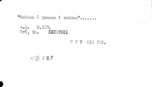 //// < //// t //// "Gubben å gumman i snöden"....... //// s.4. D.129. //// Vrå, Sm. EIE-DiSH //// V F F 612 fol. //// ^ /a? ////