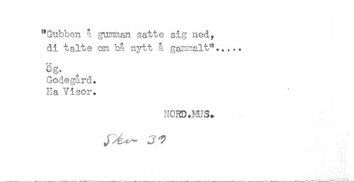 //// "Gubben å gumman satte sig ned, //// di talte om bå nytt å gammalt'*..... //// 8g. //// Godegård. //// Ha Visor. //// NCRD.MJ3^ //// JJ ^ ////