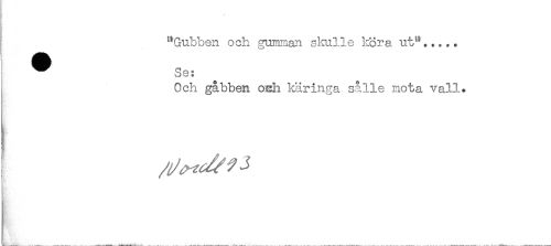 //// t //// "Gubben och gumman skulle köra, ut"..... //// ^ Se: //// Och gåbben osh käringa sålie mota vall. //// o ////