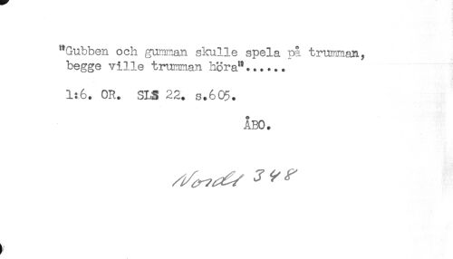 //// "Gubben och gumman skulle spela på trumman, //// begge ville trumman höra"...... //// 1:6. OR. SLS 22. s.605. //// ÅBO. ////