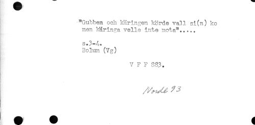 //// "Gubben och käringen körde vall si(n) ko //// men käringa velie inte mota"..... //// s.3-4. //// Bolum (Vg) //// V F F 833. ////