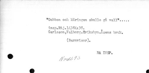 //// "Gubben och käringen skulle gå vall"..... //// insp.Rtj * 1Å384:38. //// C ar Is son ,7 ålborg. Eriksbyn. A s en s bruk. //// (Barnvisor). //// RÅ BI3P. ////