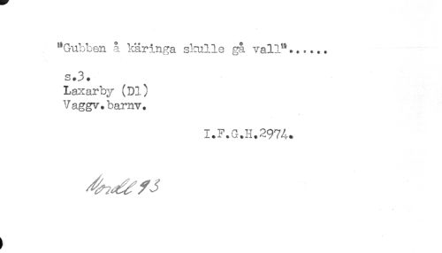 //// "Gubben å käringa skulle ga vall'*...... //// s*3. //// Laxar by (Dl) //// Vaggv.bamv. //// < * ////