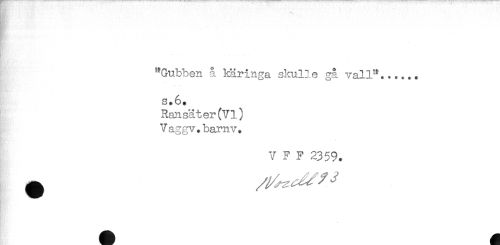 //// L "Gubben å käringa skulle gå vall"...... //// s.6. //// Ransäter(Vl) //// Vaggv.barnv. //// V F F 2359. //// a ////