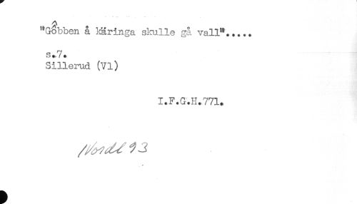 //// "Gobben å Isiringa skulle gå vall"..... //// s*7. //// Sillerud (VI) //// I.F.G.H.771. //// / ^^^ ////