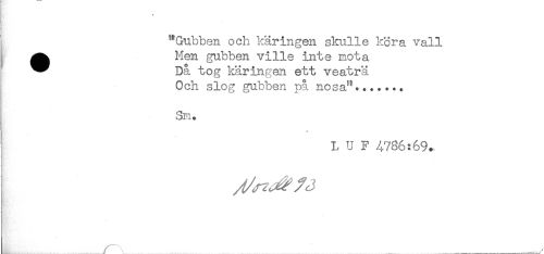 //// i "Gubben och käringen skulle köra vall //// ^^ Men gubben ville inte mota //// ^^ Da tog käringen ett veaträ //// Och slog gubben på nosa"....... //// Sm. //// L U F 4786:69. //// ^ . ____ ////