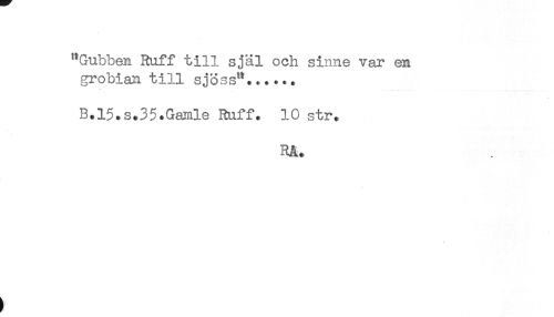 //// "Gubben Ruff till själ och sinne var en //// grobian till sjöss"...... //// B.15.s.35.Gamle Ruff. 10 str. //// RA. //// ) ////