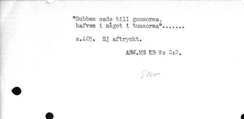 //// "Gubben sade till gummorna, //// hafven i något i tunnoma"....... //// s.405* Ej af t ryckt. //// ' . //// AIW.M3 KB Vs 2:2. ////