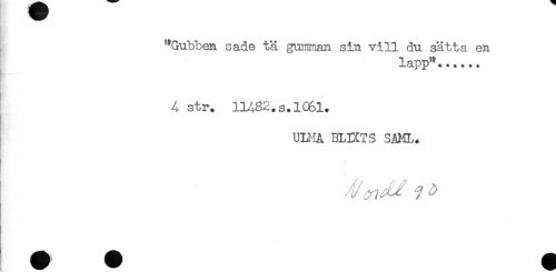 //// "Gubben sade tä guxnnan sin vill du sätta en //// lapp"...... //// A str. 11482.s.1061. //// ULMA BLIXTS SAMI. ////