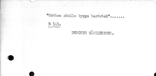 //// "Gubben skulle bygga bastutak"....... //// D 1A1. //// DEKCKER SÅNGLEKSREG. //// < //// * ////