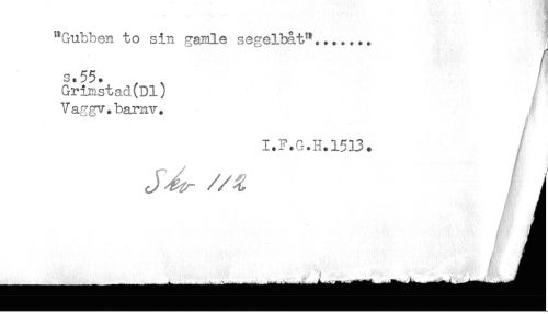 //// * - ... //// "Gubben to sin gamle segelbåt^...,... //// s.55. //// Grimstad(Dl) / //// Vaggv.barnv. //// I.F.G.H.15B. //// J ^ / j //// Ffr-'* n) ////