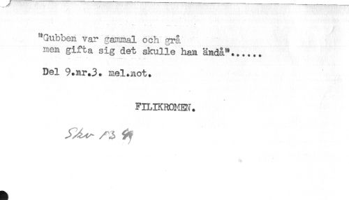 //// * **" - * //// "Gubben var gammal och grå //// men gifta sig det skulle han ändå"..____ //// Del 9.nr.3. mel.not. //// FILIKROMEN. //// % ////