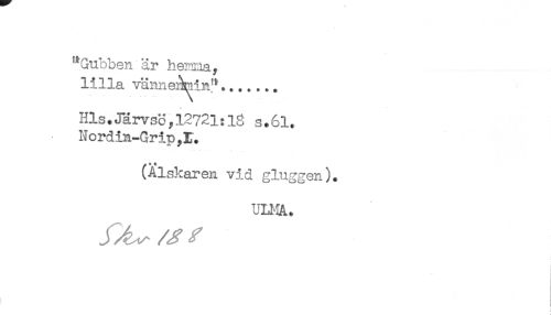 //// ^Gubben är henna, //// lilla vänneA^in.^....... //// Hls.Jarvsö,12721:lg s.6l. //// Nordin-Grip //// (Älskaren vid gluggen). //// UHÄ. //// J ^ ' ////