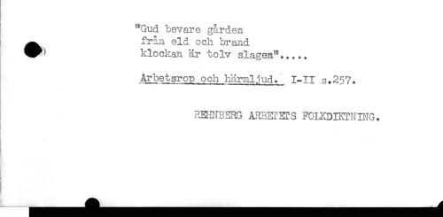 //// ! **Gud bevare gården //// ^^ från eld och brand //// klockan är tolv slagen^..... //// ! //// Arbetsrop och härmljud. 1-11 s.257. //// ! //// REHNBERG ARBETETS FCIKDIKTNDIG. //// - //// < //// i //// < //// i //// ) //// i //// i ////
