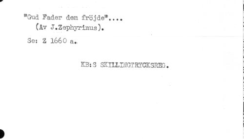 //// "Gud Fader dem frojde*.... j //// (Av J.Zephyrinus), //// < //// Se: Z 1660 a. //// KB:S SKILLDJGTRYCKSRBG. //// L //// l ////